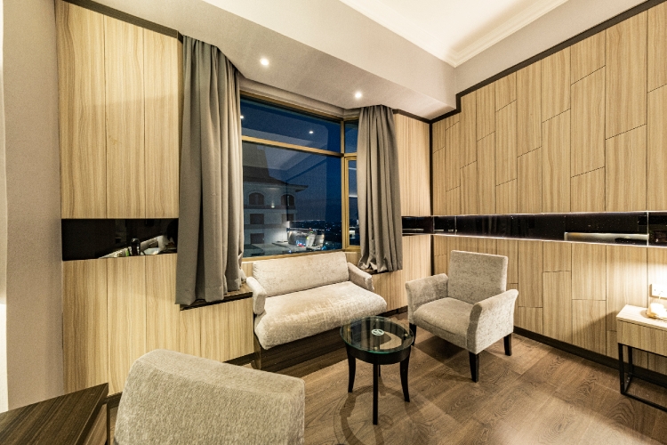 <b>The Grand Junior Suite</b> features a newly designed elegant interior with a generous space of 55 m². This suite is thoughtfully arranged with separate living and bedroom areas for enhanced comfort and privacy. It includes...